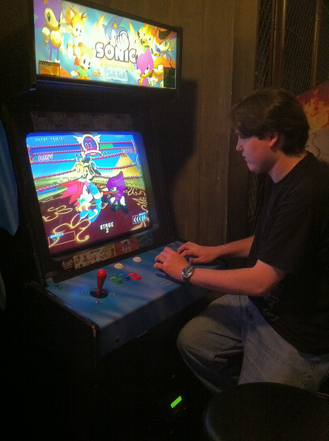 We also ran into Sonic Championship, the Sonic fighting game! I never expected to run into one of those. It looks sort of like Virtua Fighter (yeah, bad) and has a story with a strange continuity issue; you’re trying to collect the eight Chaos Emeralds. Anyways, it was actually pretty fun. Whenever you get hit, rings fly out too! gem beat me. 🙁